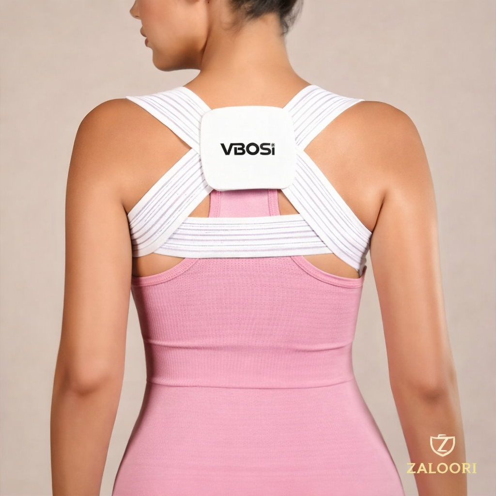 Améliore l'alignement postural : Rétracte doucement les épaules pour favoriser un bon alignement de la colonne vertébrale et réduire le dos voûté.